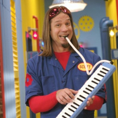Scott Durbin - He was the initial inspiration for The Imagination Movers in 2003 when he wanted to create a live action local kids show that presented strong male role models for children. Prior to the formation of the band, he was a teacher for a total of ten years, which was one of his inspirations for The Imagination Movers. Durbin is also a multi-instrumentalist, playing the mandolin, keyboards, and melodica on the show. He also wears "Wobble Goggles," which allow him to see things from a variety of perspectives. Currently, he is an Assistant Professor at the University of Louisiana.